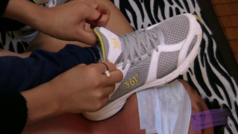 强烈汗渍白袜运动鞋踩踏羞辱